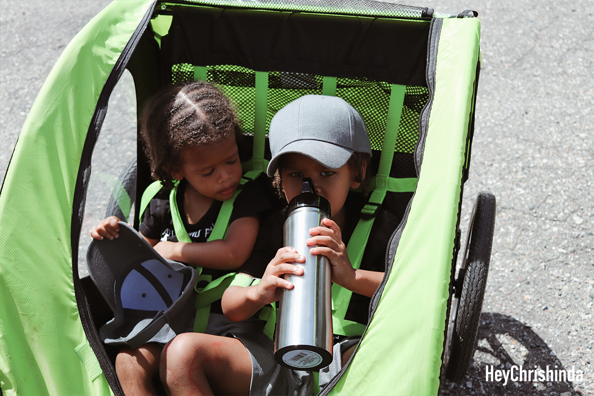 When using the bike trailer, me and Derrick get the exercise, while the boys get some fresh air.