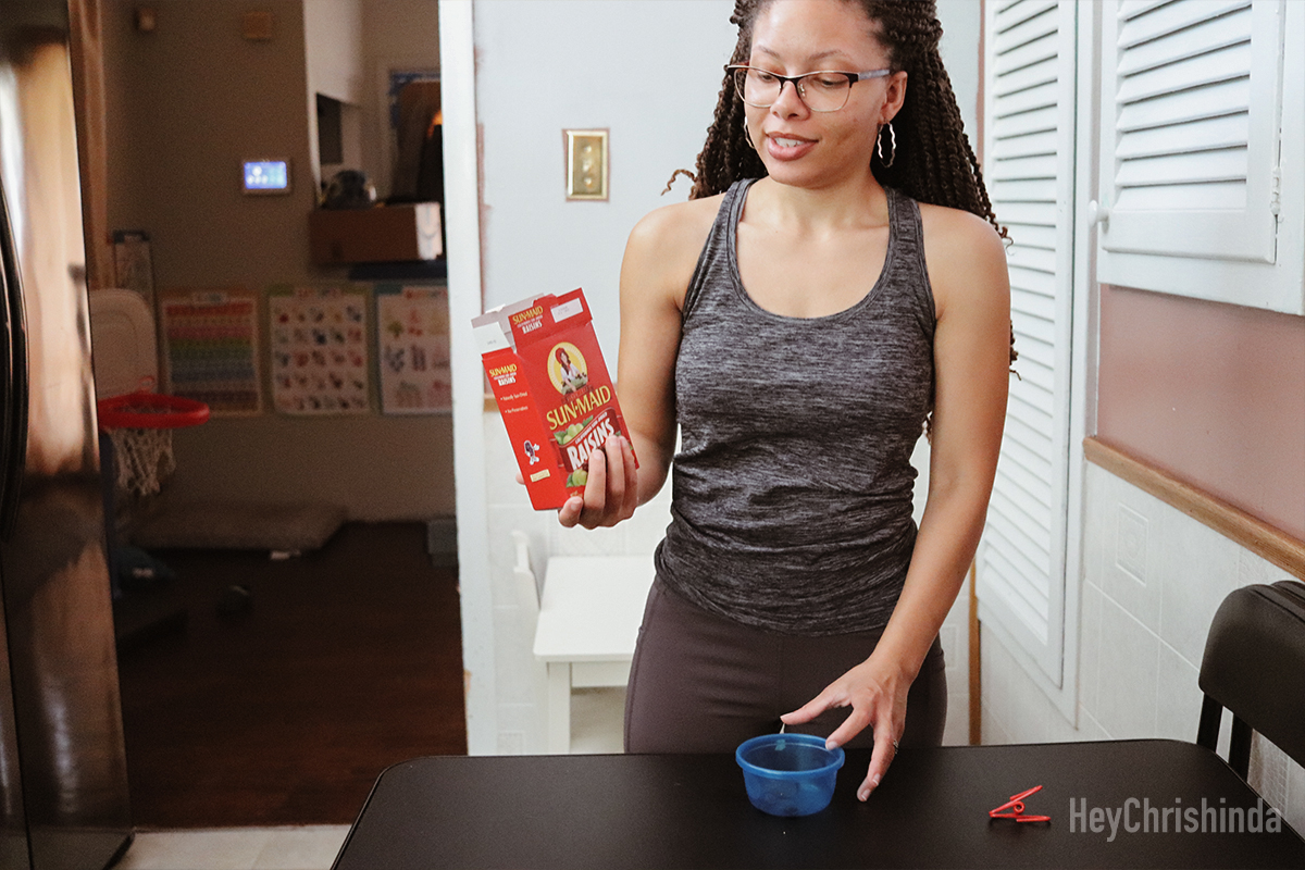 I prefer to use a small container for the raisins because sandwich bags get really sticky.