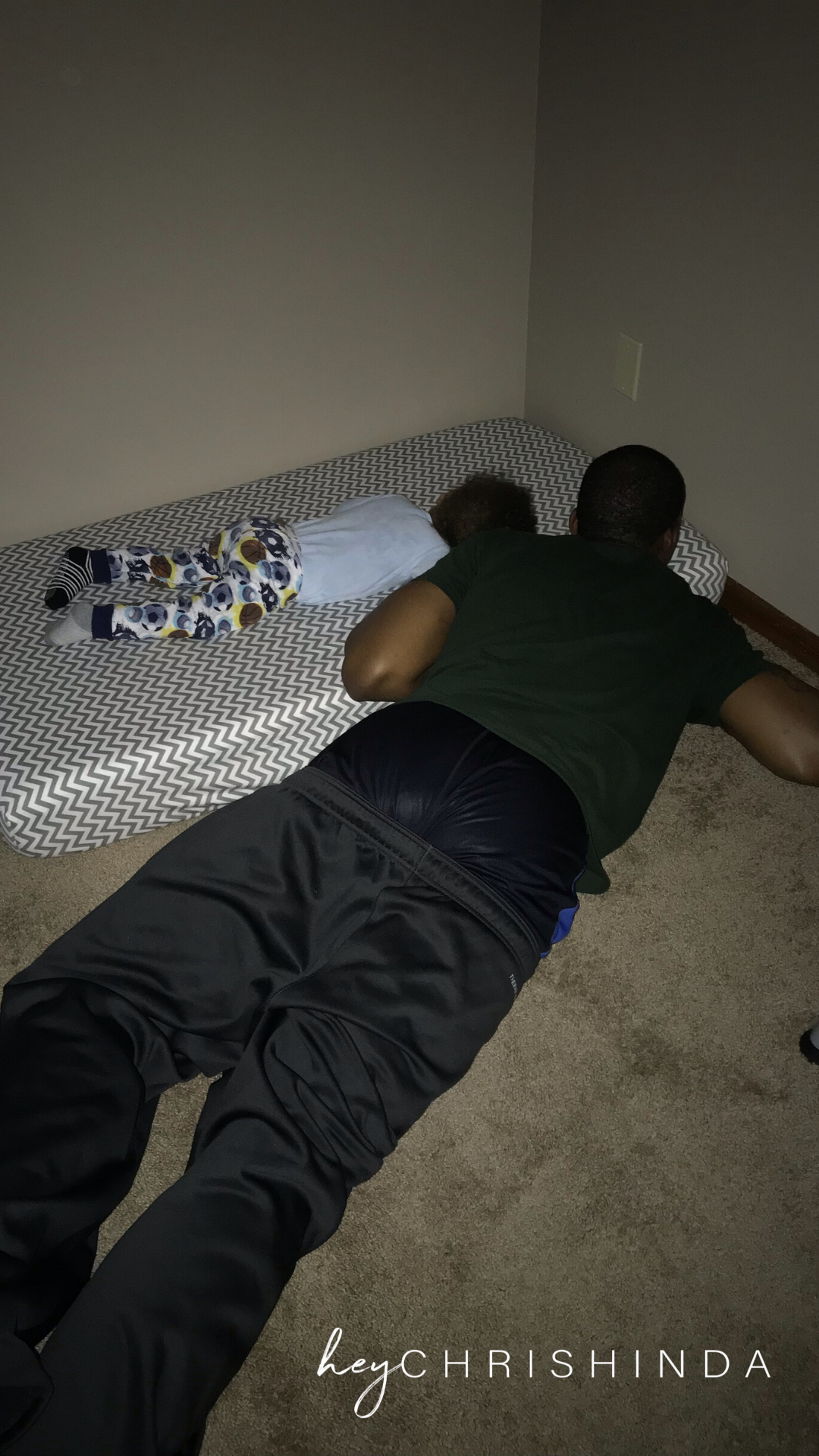 Some nights he’d roll around or want us to stay in there with him. Most of the time, Derrick would be the one to lay with him, because when I would do it, he would keep getting up and walking over me. It was just something about daddy being in the room. He might roll around and bother Derrick while he was supposed to be sleep, but he wouldn’t try to get up.