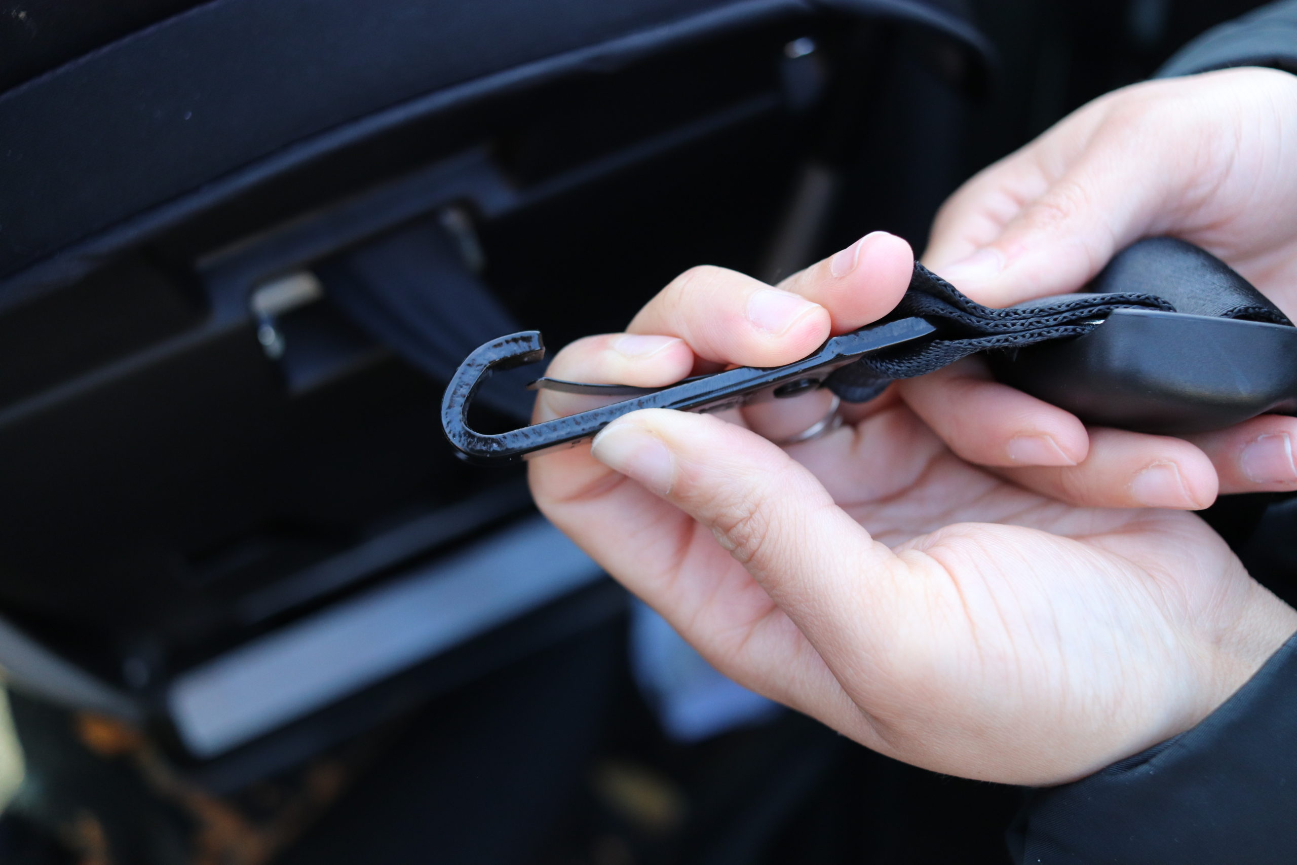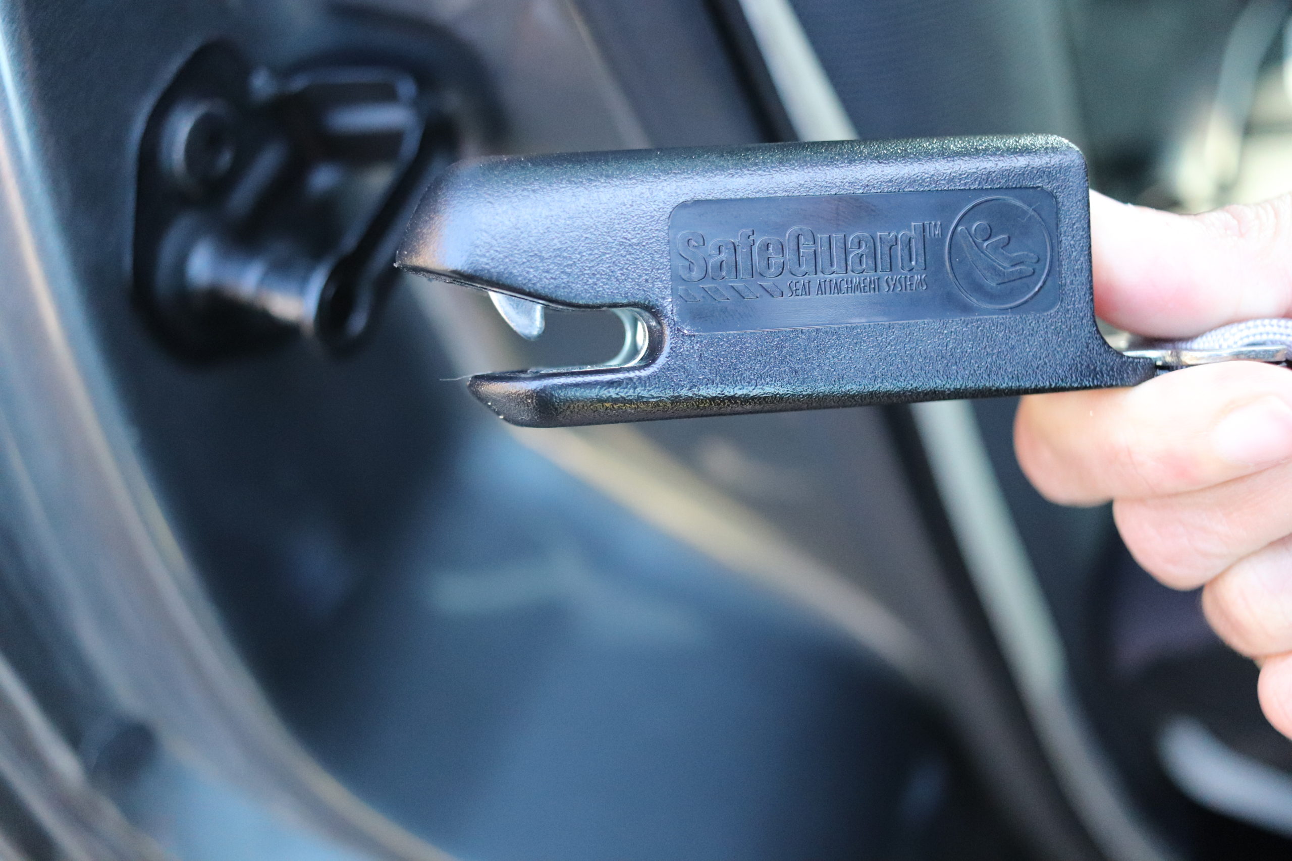 This is the latch hook that you connect behind the headrest of the back seat.