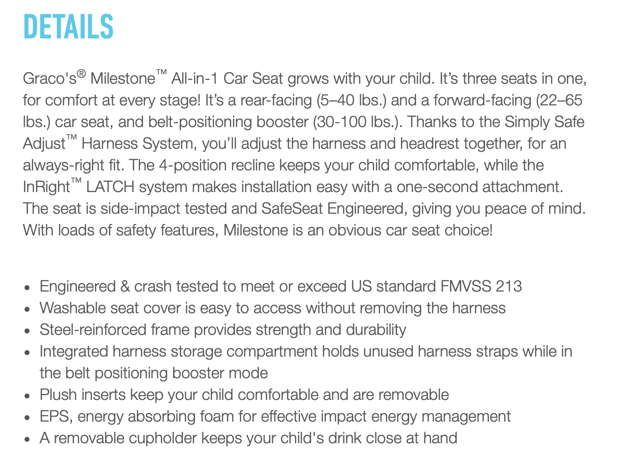 Overall, I am happy with my Graco Milestone car seats and would definitely recommend.