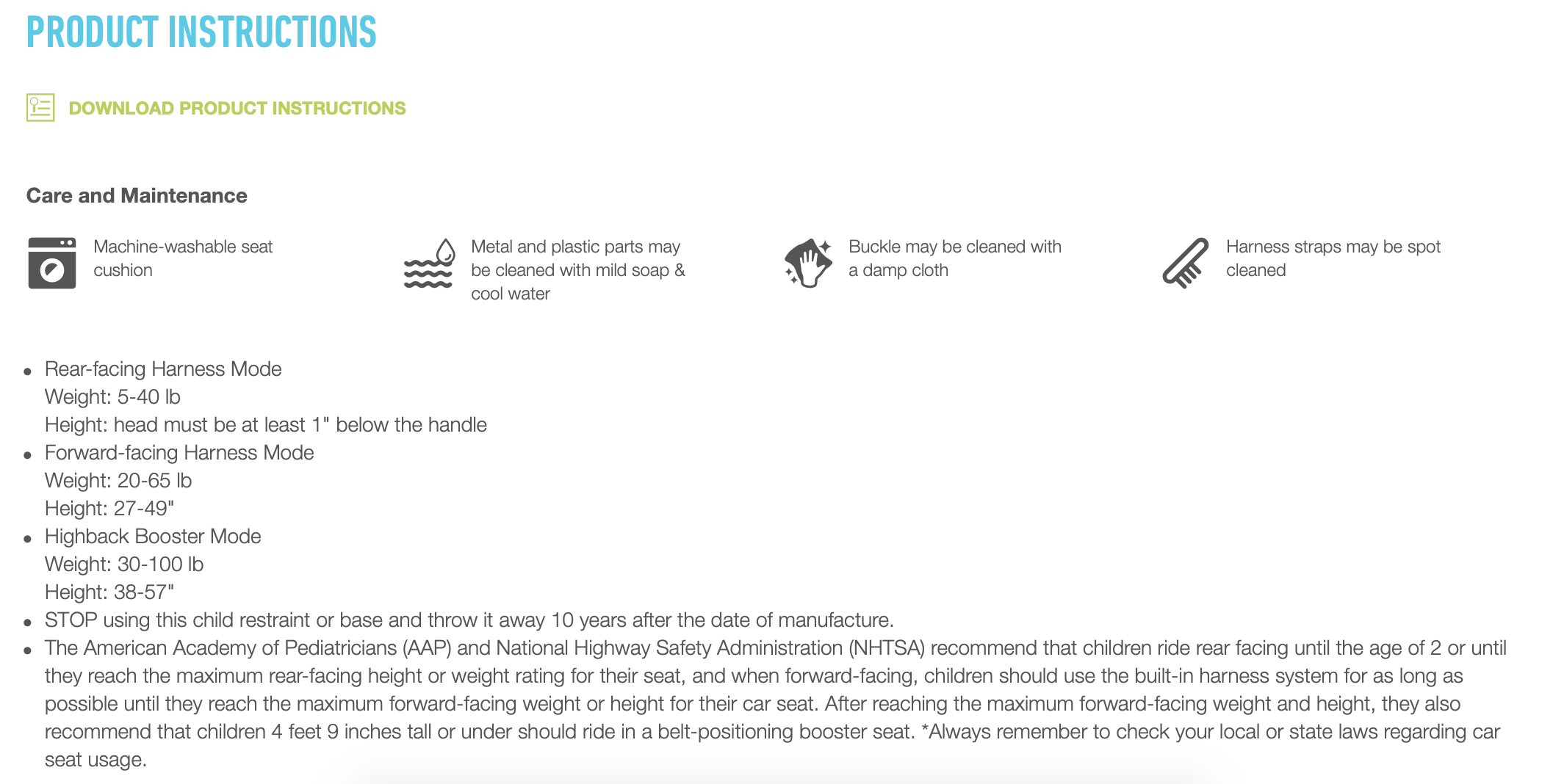 The following screenshots were taken from GracoBaby.com