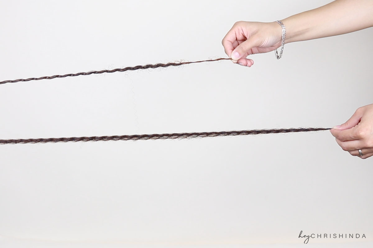 Most of the hair I came across said the length was 8 inches and my hair is way longer than 8 inches, but as I looked through a lot of pictures that people posted as reviews, I seen that a lot of people’s twists were really long, so I decided to order the 8 inch hair along with hair that was 42 inches stretched. Turns out they were pretty close in length. The difference in both brands of hair was the texture and curl pattern. One was coarse and tight and one was silky with a looser curl.